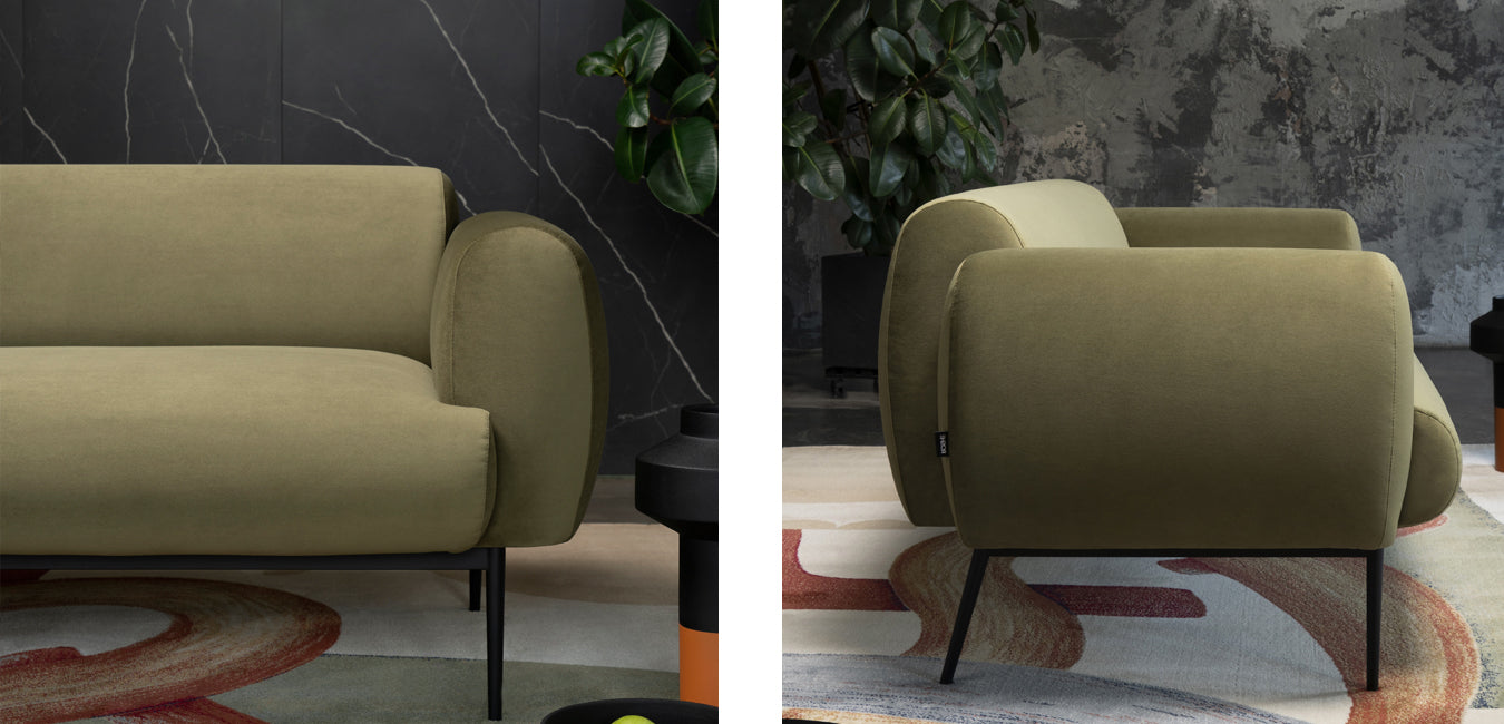 „Cloud“ sofa – tai vizualiai lengvas, išraiškingas dizaino baldas, kurio apvalios, debesų formų linijos kviečia atsipalaiduoti ir ilsėtis it debesyse. Tvirta metalinė konstrukcija su elastingomis diržinėmis atramomis ir dviem poliuretano putų sluoksniais užtikrina išskirtinį minkštumą ir ergonomišką sėdėjimą, o elegantiškai išlenktos metalinės kojos suteikia sofai rafinuotą modernumo pojūtį. Matmenys 1600 х 865 h=710